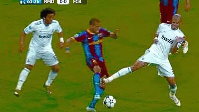 El Madrid puso, una y otra vez ayer la imagen de la entrada de Pepe a Alves, en su sala de prensa con la intención de reforzar su denuncia contra el Barça por «conducta antideportiva». En la red se daba ayer más vueltas a la jugada que las que dio Alves en el aire. Las dudas sobre si el vídeo de Punto Pelota había manipulado las imágenes de la acción de la expulsión del zaguero para demostrar que no había contacto con la pierna del azulgrana poblaban Twitter y Facebook. Varios vídeos en Youtube intentaban explicar cómo se habría producido esa presunta manipulación en la que habrían desaparecido un par de frames (fotogramas).