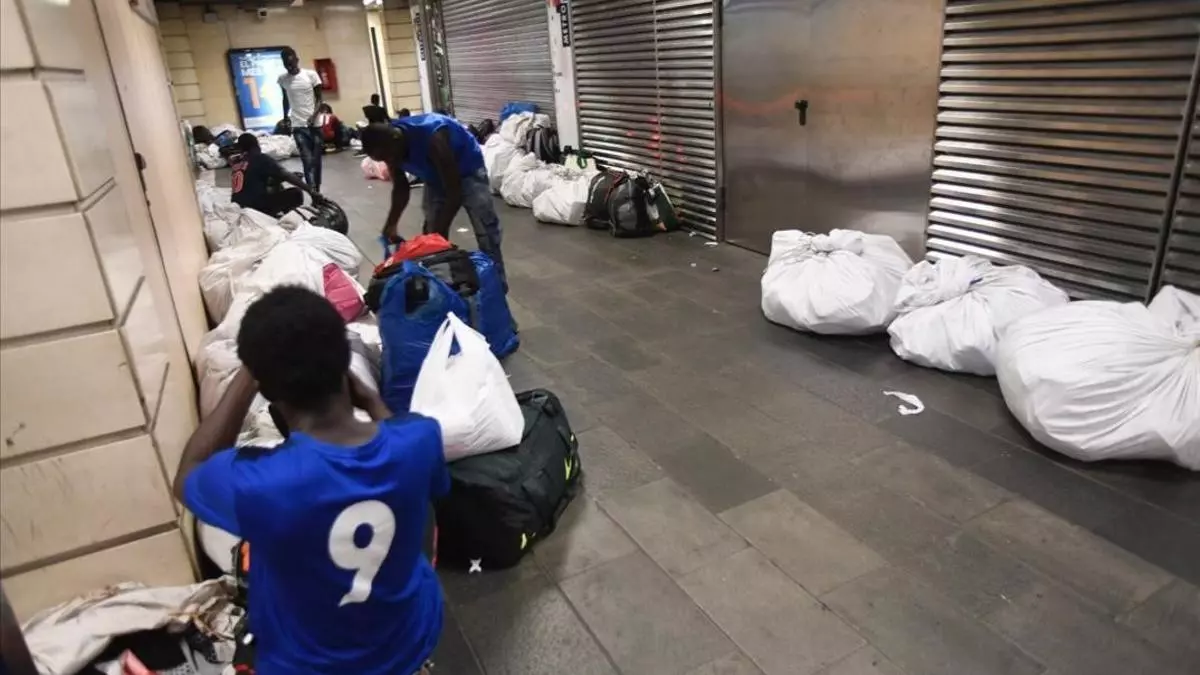 Manteros en el vestíbulo de la estación de Rodalies de plaza de Catalunya / periodico