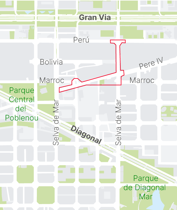 Un entramado de calles esencial para enlazar el centro de Barcelona con los barrios del distrito de Sant Martí pegados al Besòs y las ciudades situadas más allá del río encara su reforma durante el primer semestre de 2025. De no mediar retraso, la remodelación ha de durar 18 meses y culminar cuando 2026 esté avanzado, con tres cambios destacados para el tráfico: la calle Marroc -partida en dos segmentos desconectados- se unificará derribando unas fincas y urbanizando unos solares que se han de expropiar, aunque se mantendrá la plaza de la iglesia del Sagrat Cor, que invade la vía; la calle Pere IV se transformará en un eje verde entre Selva de Mar y Bac de Roda, para dar prioridad a viandantes y ciclistas; por último, se estrechará la calzada y se ensancharán las aceras en el tramo de la calle Selva de Mar comprendido entre Perú y Marroc, para reducir el trasiego de vehículos.