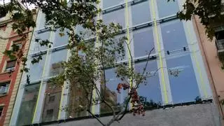 El centro cívico de la Sagrada Família deja ver su nueva fachada de cristal tras meses de obras