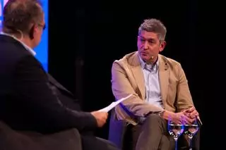 El director de EL PERIÓDICO, Albert Sáez, y el alcalde de L'Hospitalet de Llobregat, David Quirós, en la mesa de cierre del '#afterwork' con motivo del centenario de la ciudad. / Zowy Voeten