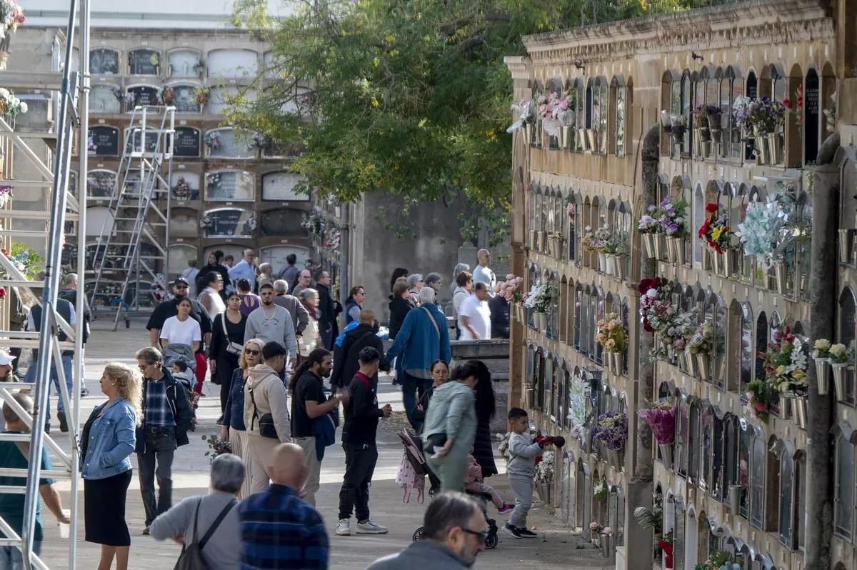 En Barcelona, la afluencia en los cementerios ha sido elevada en un día de Todos los Santos que este año ha caído en sábado (por lo que no es un fin de semana largo ni puente) y con una temperatura muy agradable, pues la máxima en la capital catalana hoy ha sido de 23 grados.