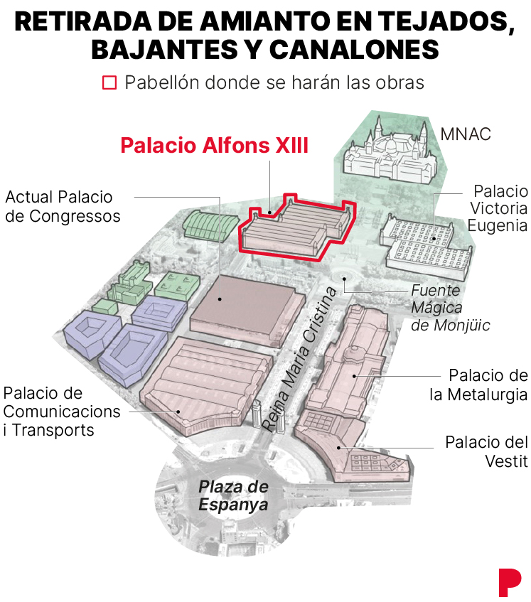 La Fira de Barcelona promueve una de las operaciones más costosas en marcha este año en Catalunya para retirar amianto, solo superada por los 3,57 millones de euros en que se presupuesta la extracción del material nocivo en 127 comunidades de vecinos de Badia del Vallès. La organización ferial está a punto de adjudicar un contrato que, de entrada, tasa en un importe máximo de 1,7 millones de euros para desmontar el techo de uno de los pabellones del recinto de Montjuïc, el palacio de Alfons XIII, que está pendiente de ser remodelado para convertirse en un centro de congresos.
