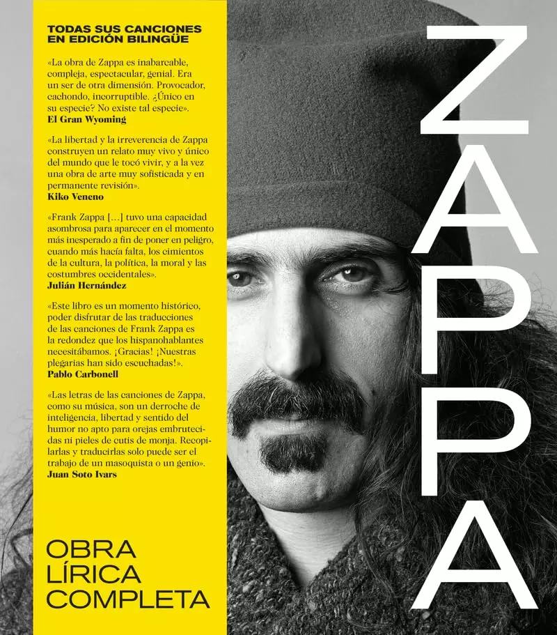 'Frank Zappa. Obra lírica completa' (Libros del Kultrum) recoge por primera vez, tanto en inglés como en español, todas las letras de los discos oficiales que el autor (Baltimore, 1940-Los Ángeles, 1993) publicó en vida y de los que dejó preparados para su lanzamiento póstumo. En total, son 339 textos correspondientes a otras tantas piezas musicales, no pocos de inusual extensión, en edición bilingüe y crítica. De la compilación de las letras en inglés, su traducción al español, las notas de las traducciones y las presentaciones de los elepés se ha encargado Manuel de la Fuente, y difícilmente habrá una persona más autorizada. De la Fuente firmó los libros 'Frank Zappa en el infierno. El rock como movilización para la disidencia política' (2006) y 'La música se resiste a morir. Frank Zappa: biografía no autorizada' (2021), así como la traducción de las memorias del artista ('La verdadera historia de Frank Zappa', 2014) y de su secretaria Pauline Butcher ('¡Alucina! Mi vida con Frank Zappa', 2016).