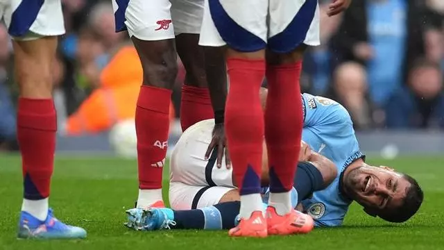 Rodri se duele de la lesión en la rodilla durante el City-Arsenal. / DPA vía Europa Press