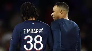 Ethan Mbappé y Kylian Mbappé, durante un partido de la pasada temporada con el PSG. / YOAN VALAT / EFE