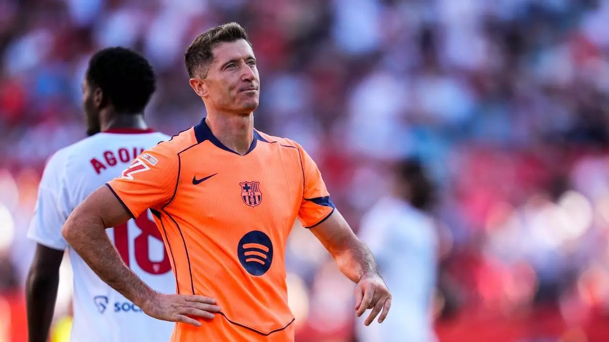 Robert Lewandowski se lamenta en el Pizjuán. / Afp7