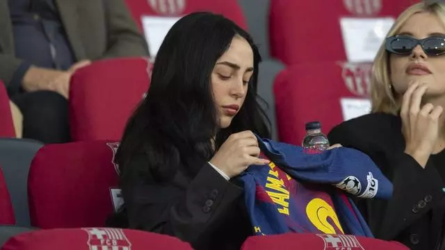 La artista Nicki Nicole, con una camiseta de Lamine Yamal, este martes en Montjuïc. / JORDI COTRINA