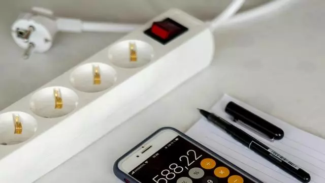 Una calculadora, una factura de la luz y varios enchufes. / EP