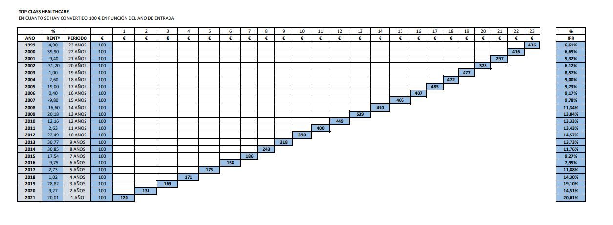 Esa es la rentabilidad que ofrece su trayectoria a lo largo de los ejercicios, en carteras invertidas en las distintas entidades en las que ha trabajado o en su posterior trayectoria independiente. Sallés es un profesional de la gestión en España, con unos 30 años de trayectoria, y puede decirse que es el mejor (y primer) gestor en la industria sanitaria. En el pasado siglo, fundó el fondo Bankpyme Multisalud, que, aparte de aparecer en los mejores puestos de los rankings por categoría, llegó incluso a ser el mejor del total cuando se integraron los fondos de Bankpyme se integraron en Gescaixa.