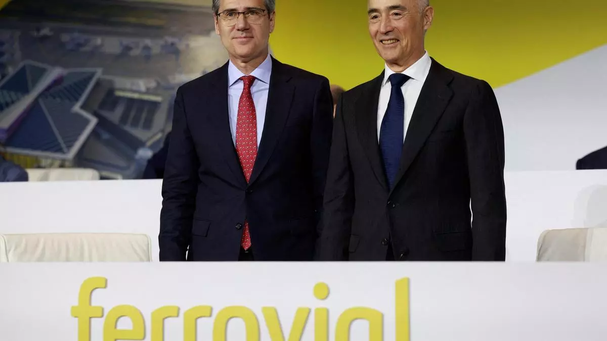 Ignacio Madridejos, consejero delegado de Ferrovial, junto con Rafael del Pino, presidente de la empresa de infraestructuras y máximo accionista, durante la Junta de Accionistas de 2023 / EPE