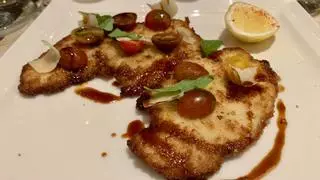 En los principales, nos encontramos con ‘steak tartar’ acompañado de patatas rejilla (preferiríamos las 'soufflé', pero…) o 'entrecot', pero también hay margen para la sorpresa: un escalope de pollo a la milanesa que resulta difícil encontrar en restaurantes de esta ambición. Finísimo, con un rebozado impecable, y muy bien frito. Llega a la mesa coronado con lascas de queso parmesano, tomatitos cherry y rúcola. ¿Placer culpable? Sin duda. Cero sofisticación pero gozo puro.