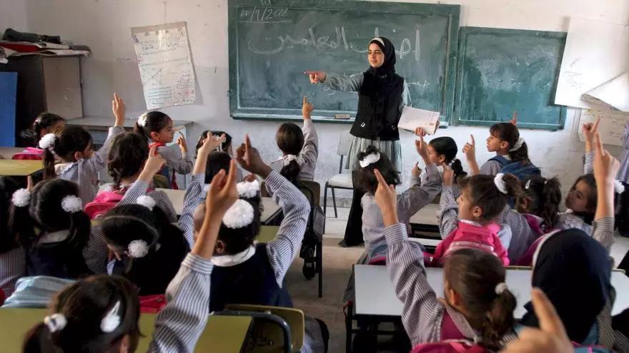 HEBRON (CISJORDANIA) Niños palestinos estudian en una escuela de la UNRWA / ABED AL HAFIZ HASHLAMOUN