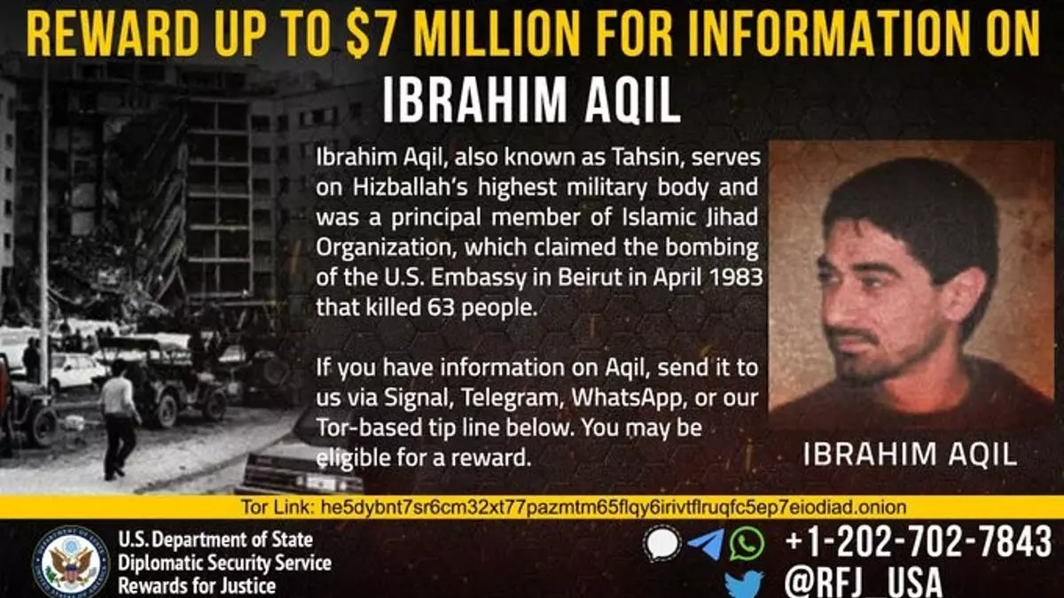 Aqil fue designado terrorista por el Departamento del Tesoro de Estados Unidos en 2015 y por el Departamento de Estado en 2019. El Tesoro estadounidense había ofrecido siete millones de dólares a cambio de cualquier información sobre él por su papel en los ataques contra la embajada de Estados Unidos en Beirut en abril de 1983 (63 muertos) y contra los marines estadounidenses en octubre de 1983 (241 soldados muertos). Estos ataques fueron reivindicados por la Jihad Islámica, grupo vinculado según Washington a Hizbulá. Según el Tesoro estadounidense, también "dirigió" la toma de rehenes por parte de Occidente en el Líbano en los años 80. También luchó en la vecina Siria, donde Hizbulá apoya al régimen de Bashar al-Assad desde 2013, enfrentándose a un levantamiento popular en 2011 que degeneró en una guerra civil.