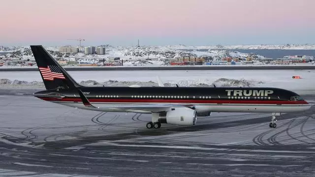 El avión de Trump en el que viajó su hijo, tras aterrizar en Groenlandia / AP/LAPRESSE