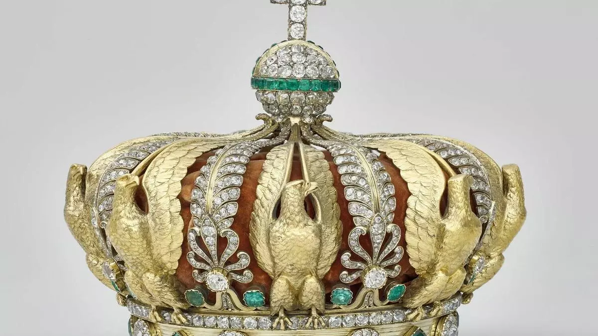 Según Le Parisien, la corona está rota. Se trata de una corona con ocho arcos en forma de águila de oro cincelado bajo un globo de diamantes rematado con una cruz latina. En total, suma 1.353 diamantes y 56 esmeraldas.