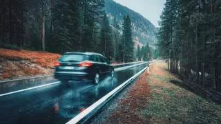 Un coche circulando con lluvia y el asfalto mojado / Norauto