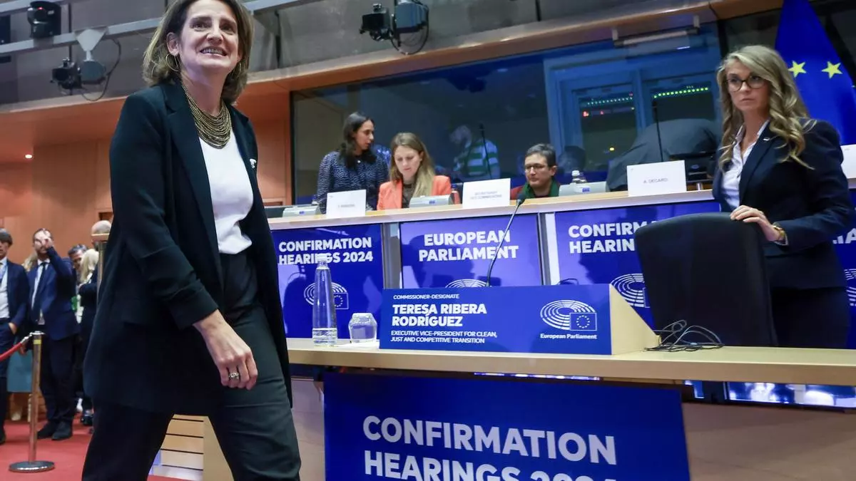 Teresa Ribera, actual ministra de Transición Ecológica, en el Parlamento Europeo (Bruselas). / EFE/EPA/ Olivier Hoslet
