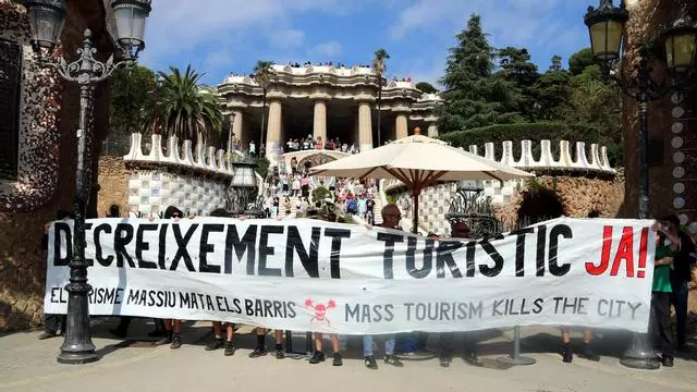 Concentración contra el turismo masivo en las puertas del Park Güell de Barcelona / ACN