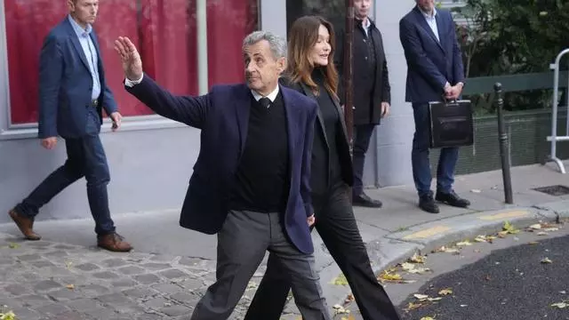Nicolas Sarkozy i la seva dona, Carla Bruni, surten ahir del seu domicili a París per dirigir-se a la presó. | THIBAULT CAMUS / AP