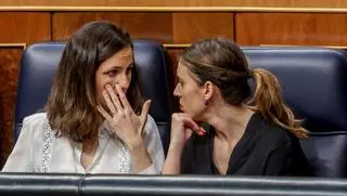 Irene Montero e Ione Belarra, este martes en el Congreso de los Diputados. / RICARDO RUBIO / EUROPA PRESS