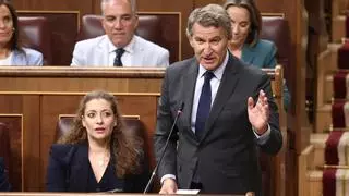 El presidente del PP, Alberto Núñez Feijóo, interviene durante una sesión de control al Gobierno en el Congreso / Eduardo Parra - Europa Press
