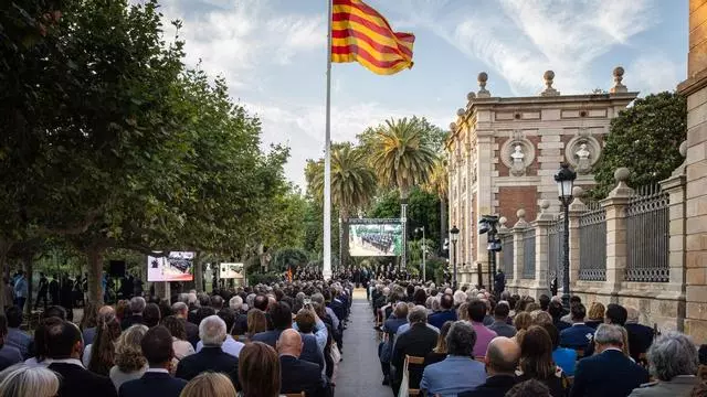 El Parlament iza una gran 'senyera' y une a la plana mayor de la política catalana en la vigilia de la Diada