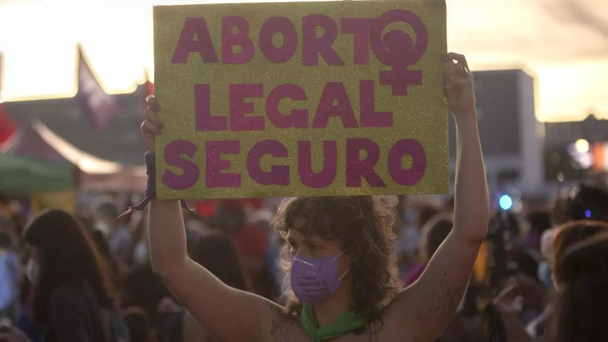Una mujer sostiene un cartel a favor del aborto legal durante la movilización para conmemorar el Día Internacional de la Mujer, en Brasilia (Brasil). EFE/ Joédson Alves / Ferran Nadeu / EPC
