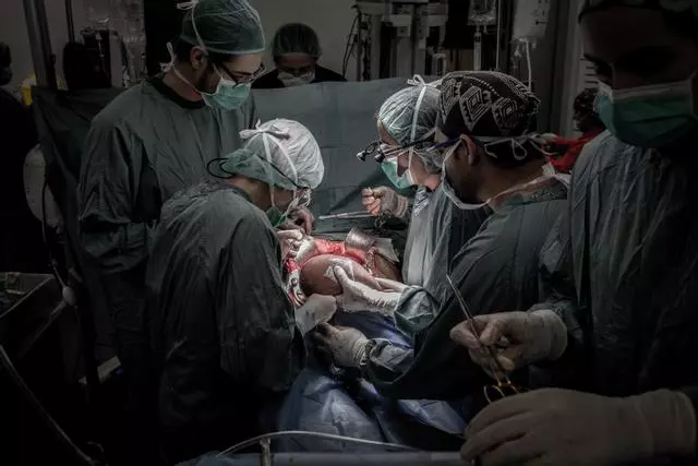 Un equipo de cirujanos realiza un trasplante en la mesa de operaciones