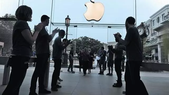 Empleados de Apple reciben con aplausos a los primeros clientes llegados para comprar el iPhone 5 en Glendale (California), en septiembre del 2013.