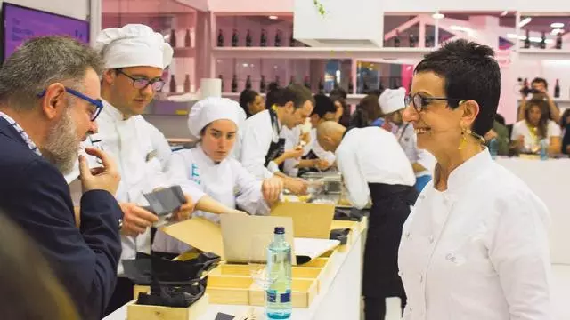 Ante un público expectante, Carme Ruscalleda inauguró ayer el primero de los talleres gastronómicos magistrales de The Alimentaria Experience: el área del salón Restaurama de Alimentaria, donde se van a celebrar más de 50 actividades, entre 'showcookings' y talleres, impartidas por 35 cocineros que suman gasta 45 estrellas Michelín. Ruscalleda es la chef con más estrellas del mundo, con un total de siete, entre sus restaurantes Sant Pau y Moments.
