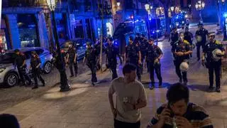 Agentes desalojan el paseo del Born, cuando se cumple el toque de queda, la madrugada del 25 de julio / JORDI OTIX