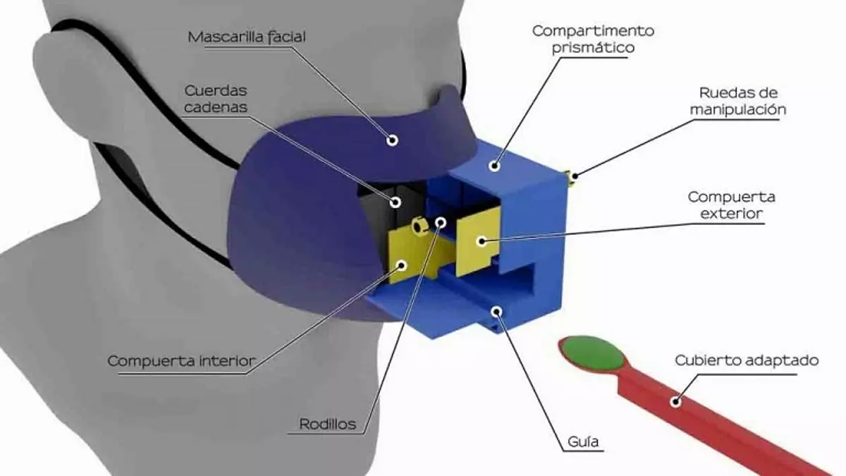 De forma que el espacio disponible para introducir la cuchara o el tenedor con el alimento debía permanecer cerrado la mayor parte del tiempo», explica. Precisamente uno de los momentos en el que el riego de contagio es mayor es el de la comida en compañía, abunda, porque hablamos sin mascarilla y próximos a los demás.