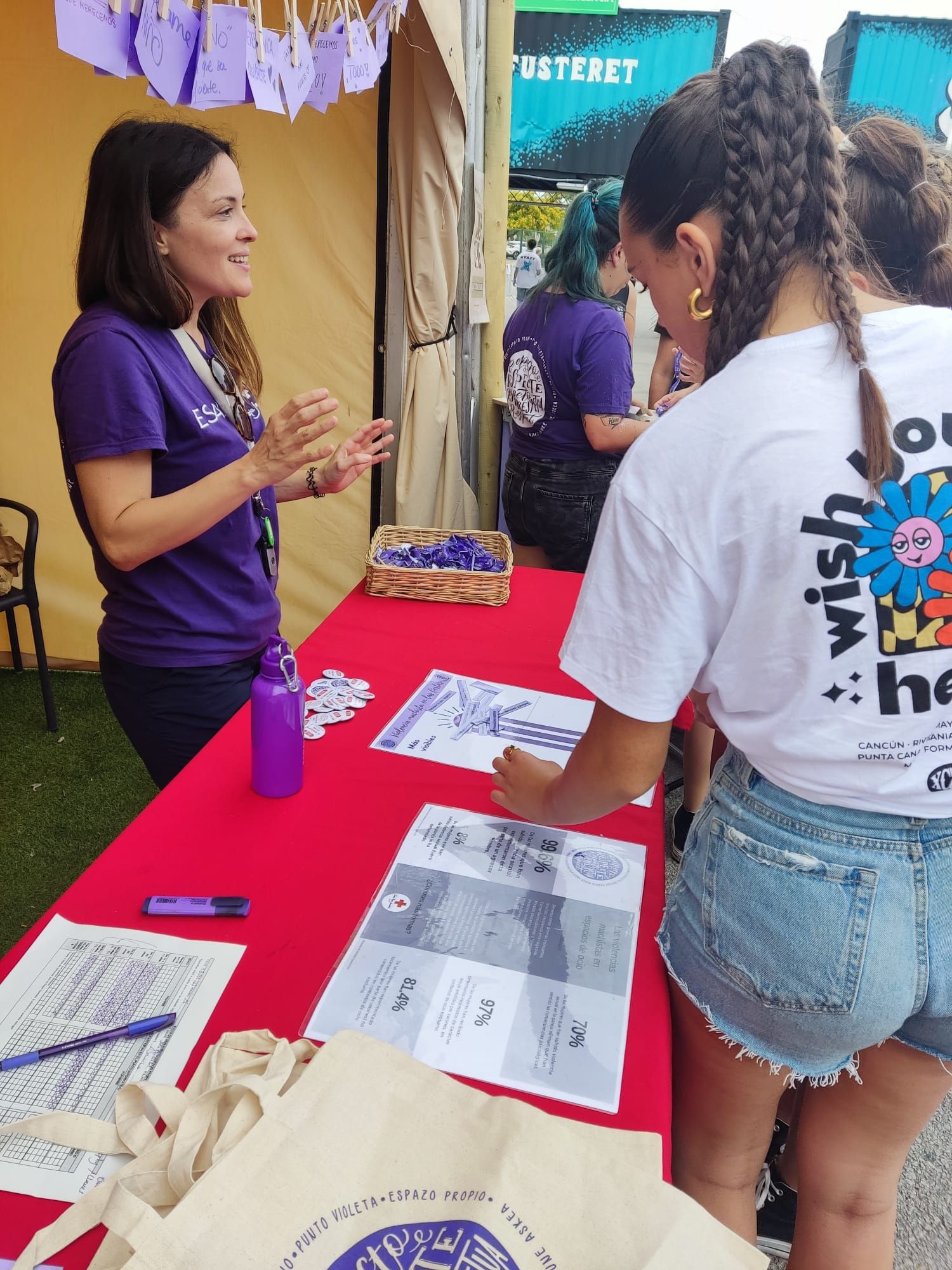 La organización instala puntos violeta en zonas de ocio nocturno, festivales y fiestas para prevenir las agresiones sexuales, sensibilizar sobre la violencia machista a través de la diversión, e intervenir y acompañar a posibles víctimas de violencia sexual.